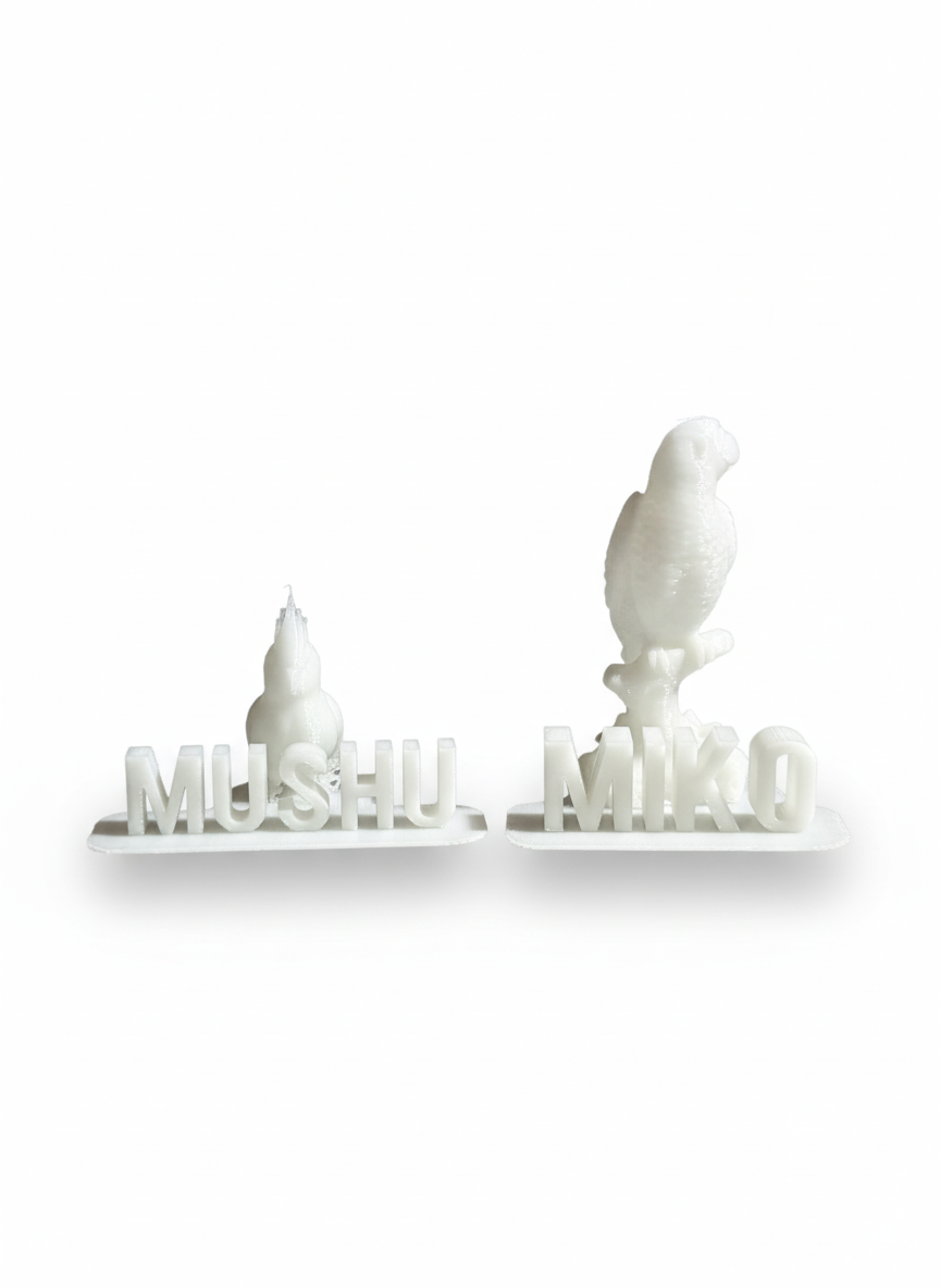A custom 3D-printed figure of your bird, complete with its name and unique design.